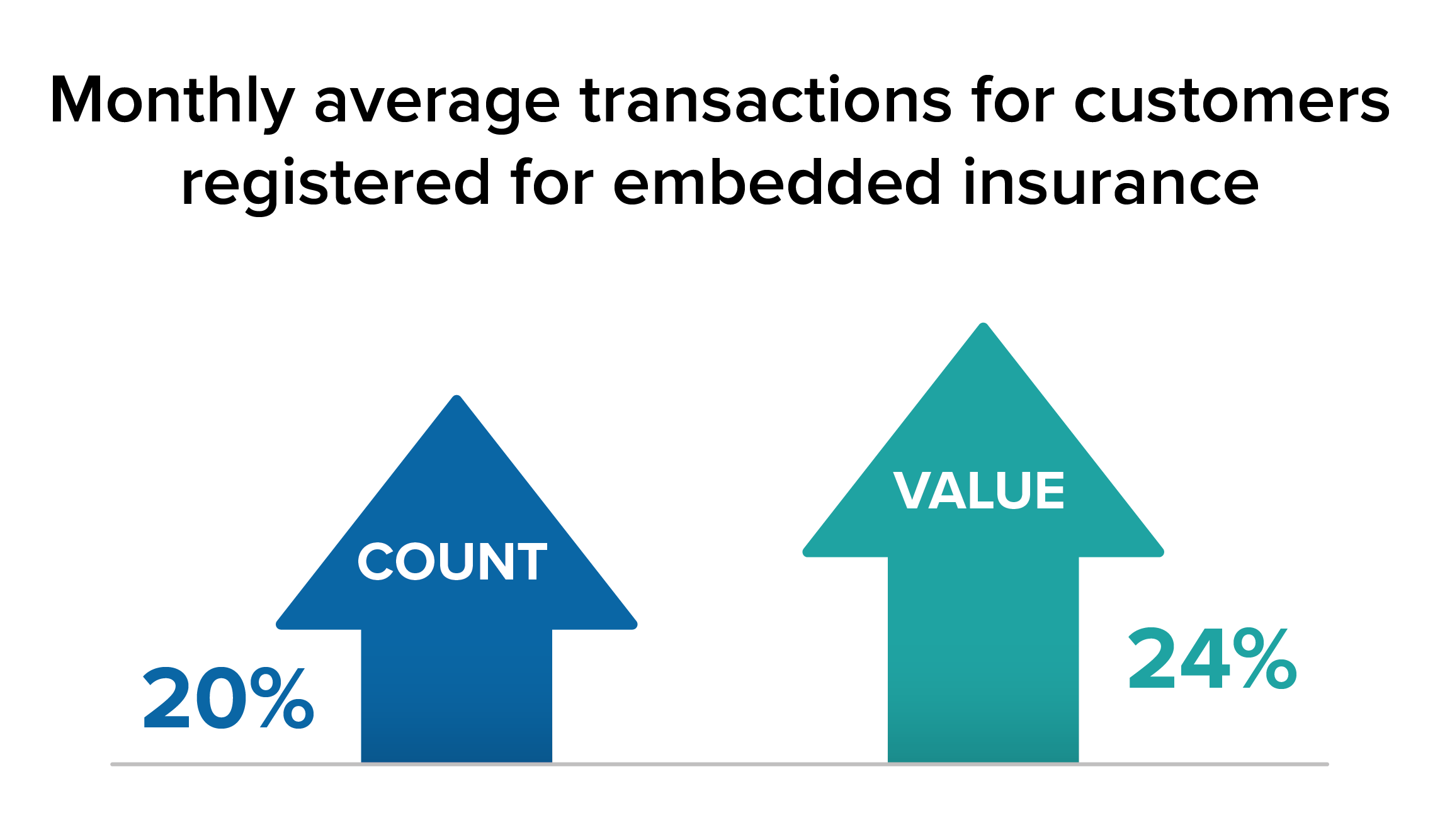 - Is there an increase in volume and quantity of mobile money transactions for subscribers who register for free embedded insurance?