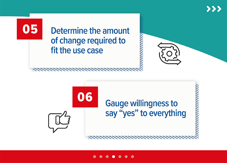 Remember to consider the resources and technical know-how required to make necessary adjustments and the partner’s ability to meet the desired timeline for delivery. Above all, be honest about the capabilities of both the solution and the partner. Don’t force a partnership where one may not be suited.